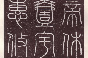 - 峄山碑.李斯撰.明拓宋郑文宝摹刻长安本,又碑后附有郑文宝跋,碑字雄浑温雅,无一笔开后人恶道,《石鼓》后无可比肩,汉印之传于后者,皆步其轨蹰。《峄山碑》是秦始皇二十八年(公元前219年)